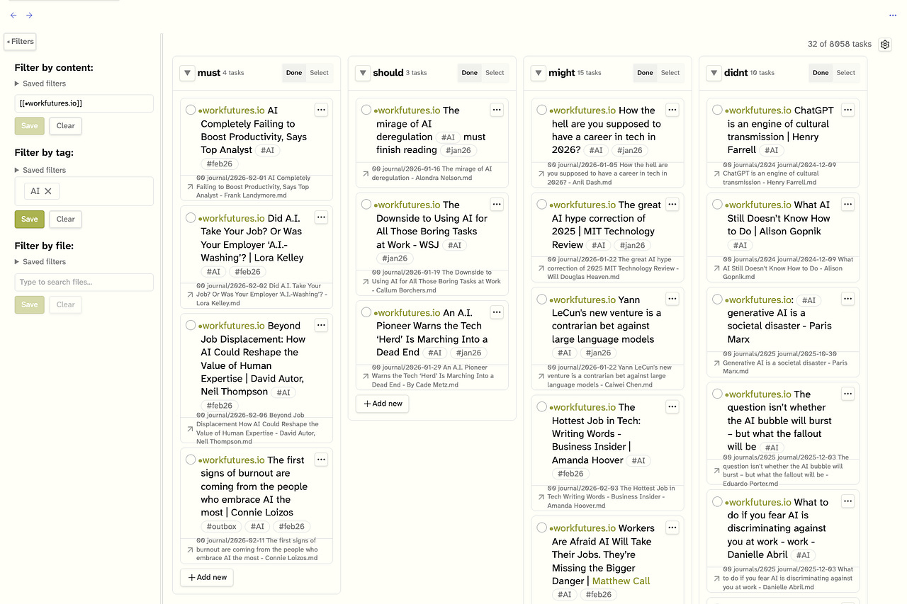 Managing projects through a set of complementary views over a folder of notes is powerful.