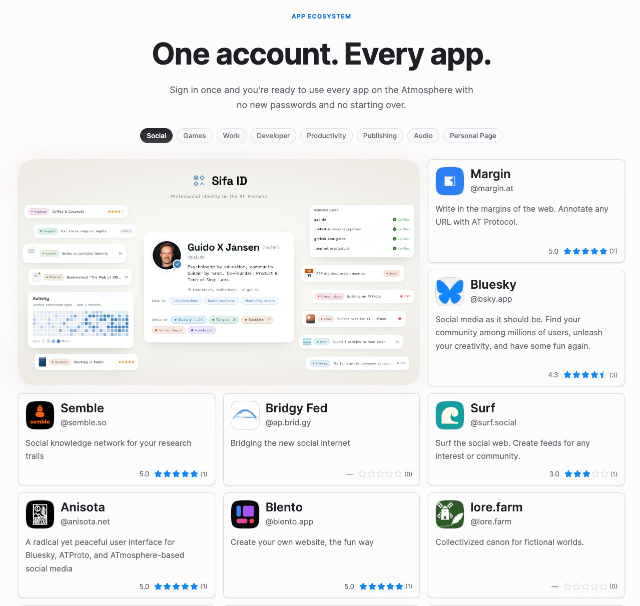 The Atmosphere is a new open network of apps and services that all work together. Think of it like truly owning your Google Account. Instead of every app being its own walled garden, Atmosphere apps share a common foundation — so you only need one account to use them all, and they can easily share data.