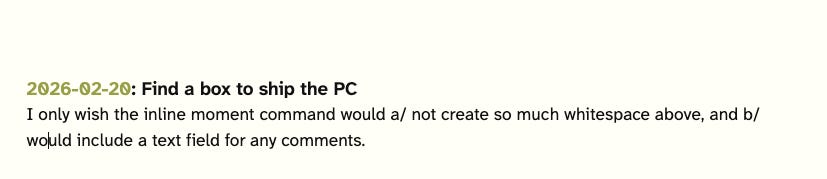 I only wish the inline moment command would a/ not create so much whitespace above, and b/ would include a text field for any comments.